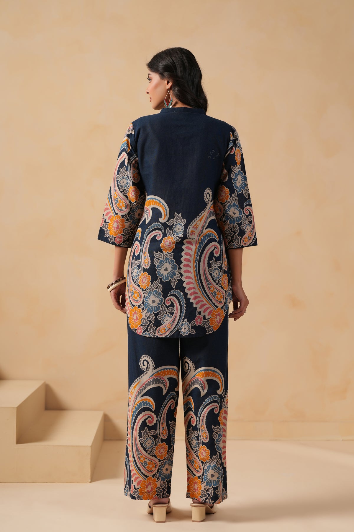 Add a touch of elegance to your everyday style with this Blue Cotton Flex Designer Printed Co-Ord Set. The top features a beautiful floral print with potli buttons on the front panel, a mandarin neckline, and 3/4 regular sleeves. Designed in a comfortable thigh-length silhouette, it pairs perfectly with matching printed pants featuring a semi-elastic waistband and two side pockets. Ideal for casual outings and daily wear, this set combines comfort with effortless charm.