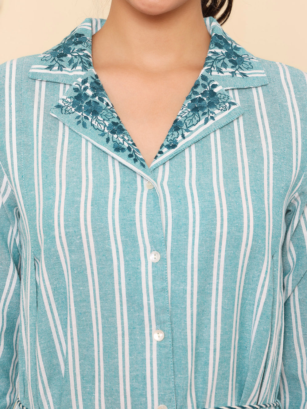 Green Yarn Dyed Embroidered Collar Dress