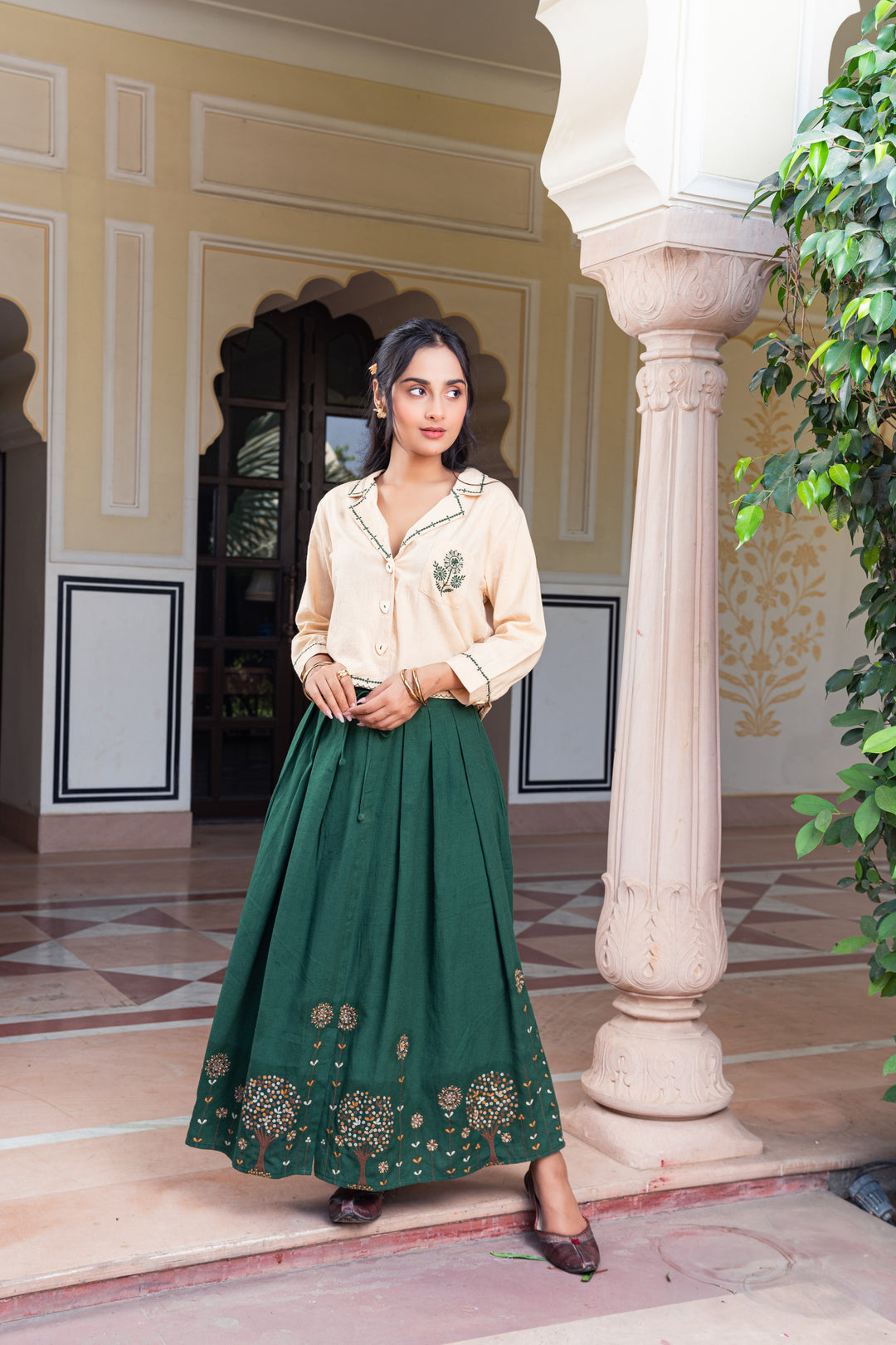 Green & Rust Cotton Embroidered Designer Co-Ord Set