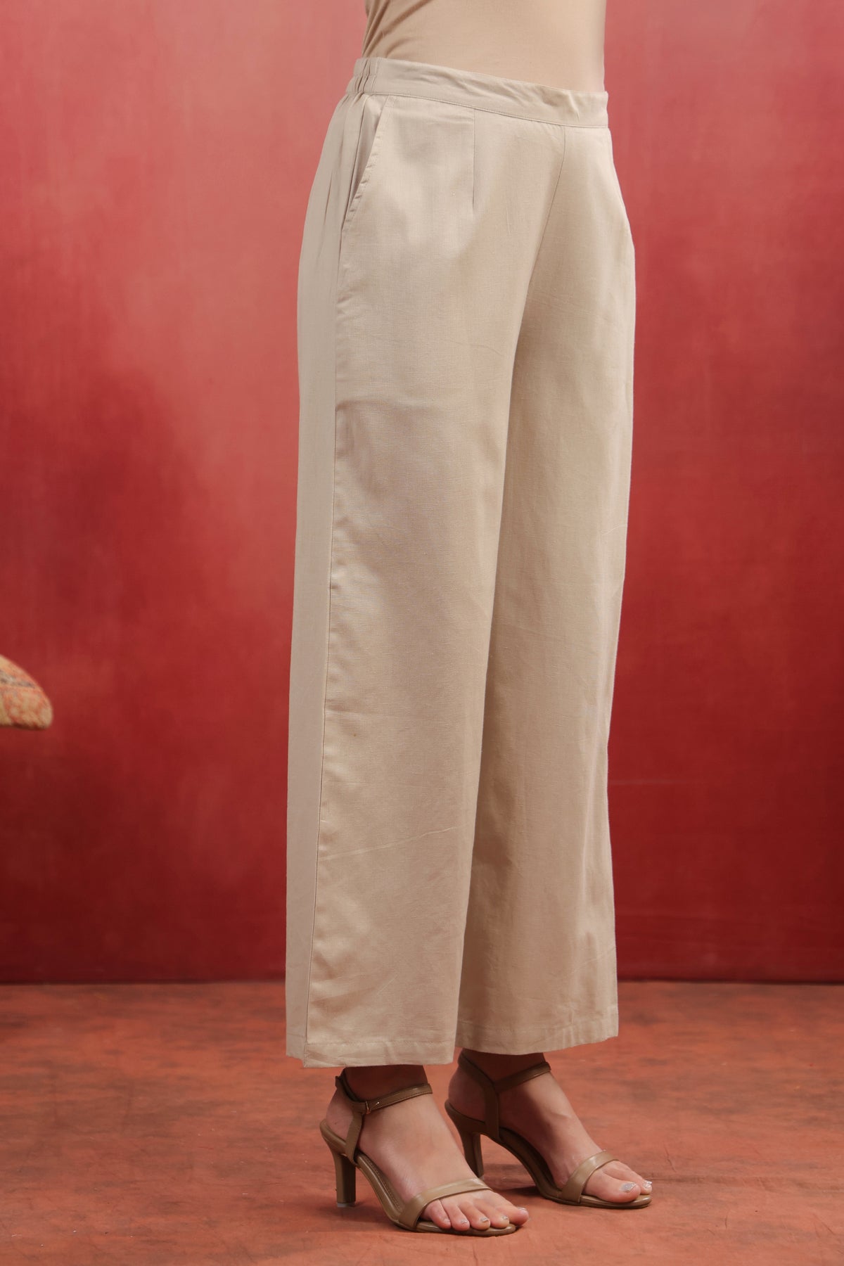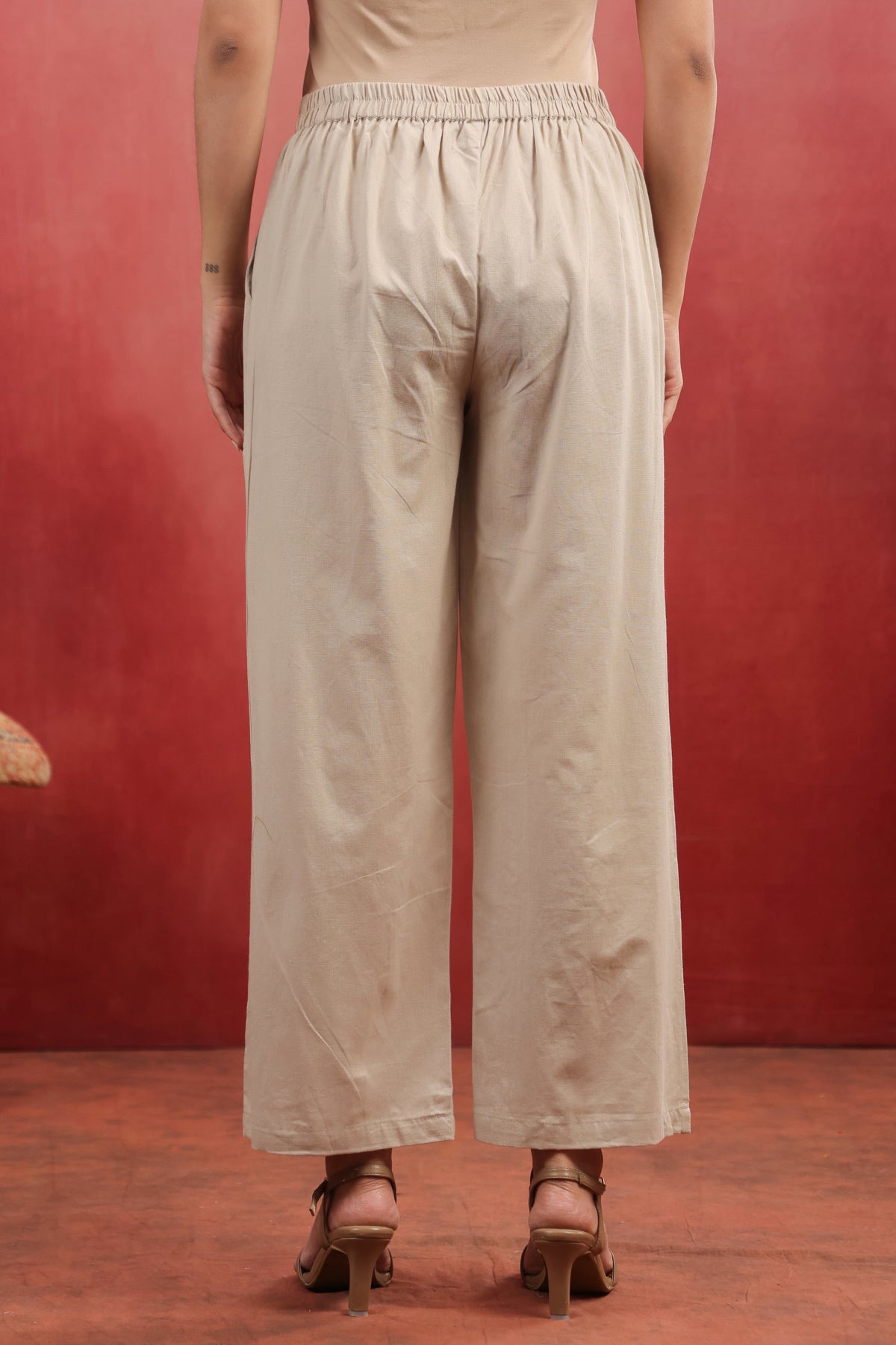 Elevate your everyday wardrobe with this Beige Cotton Solid Straight Fit Palazzo, crafted from soft and breathable cotton for all-day comfort. Designed with a semi-elastic waistband for a flexible fit, this solid palazzo offers a clean and timeless look. The straight-fit silhouette ensures effortless style, while both-side pockets add practicality. Perfect for pairing with kurtas or tops, this versatile palazzo is ideal for casual and daily wear.