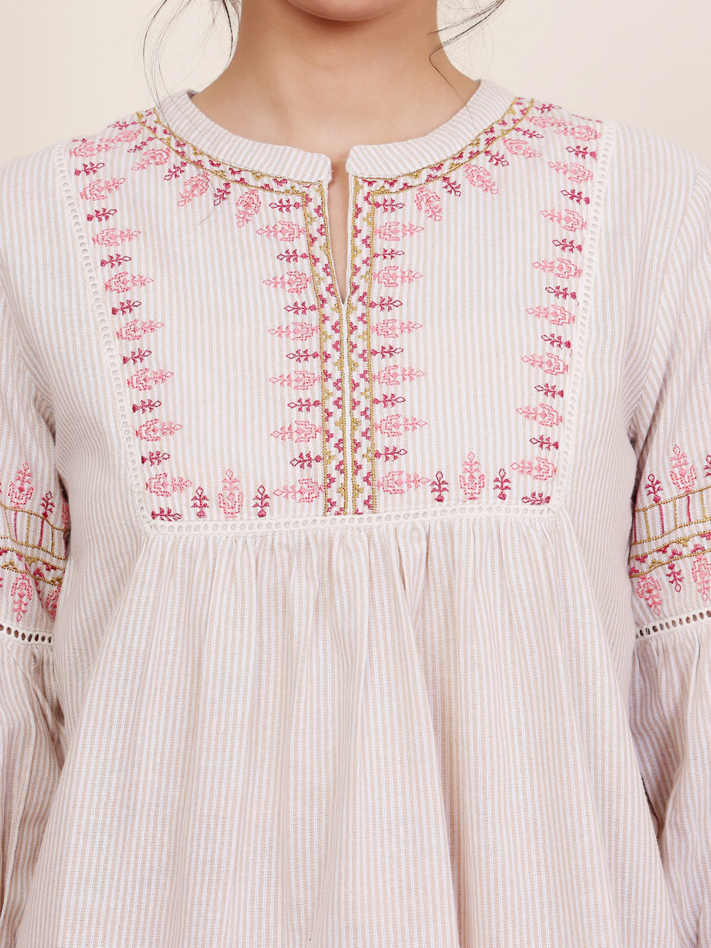 Elevate your wardrobe with this Beige Thread Embroidered Top, designed for versatility and style.