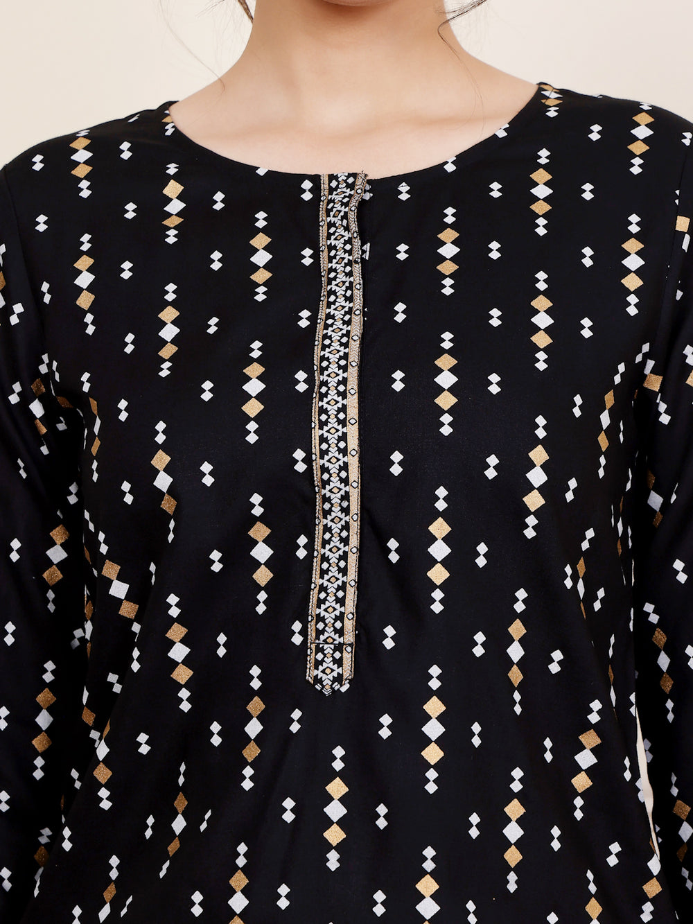 Redefine elegance with our Black Viscose Printed Tunic Top, a perfect blend of style and comfort.