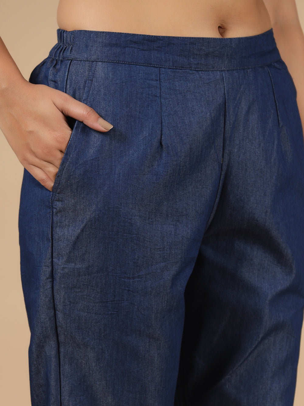 We are introducing our Denim Embroidered Straight Pant — a chic blend of casual comfort and subtle elegance. Designed in a straight, regular fit, this pant is crafted from high-quality denim in a classic blue hue. The solid design features tasteful embroidery along the hemline, adding a hint of detail and style that makes it stand out. Ideal for everyday wear, these pants are a versatile addition to your wardrobe, perfect for any casual occasion.