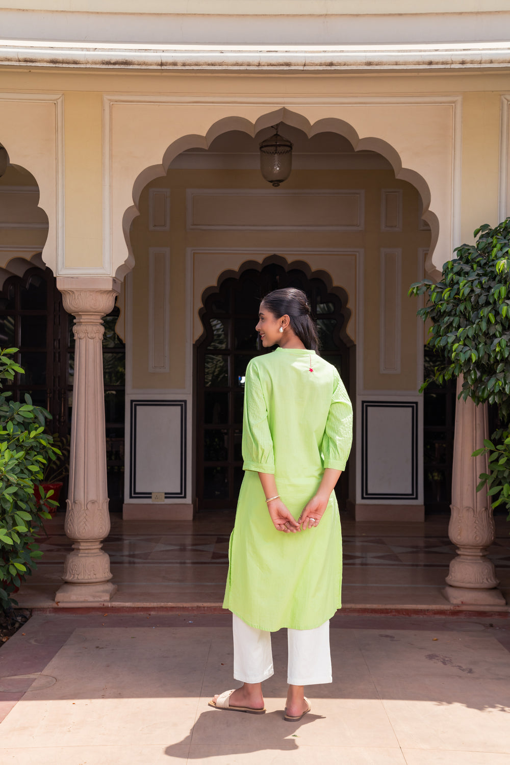 Green Cotton Detailed Straight Kurta