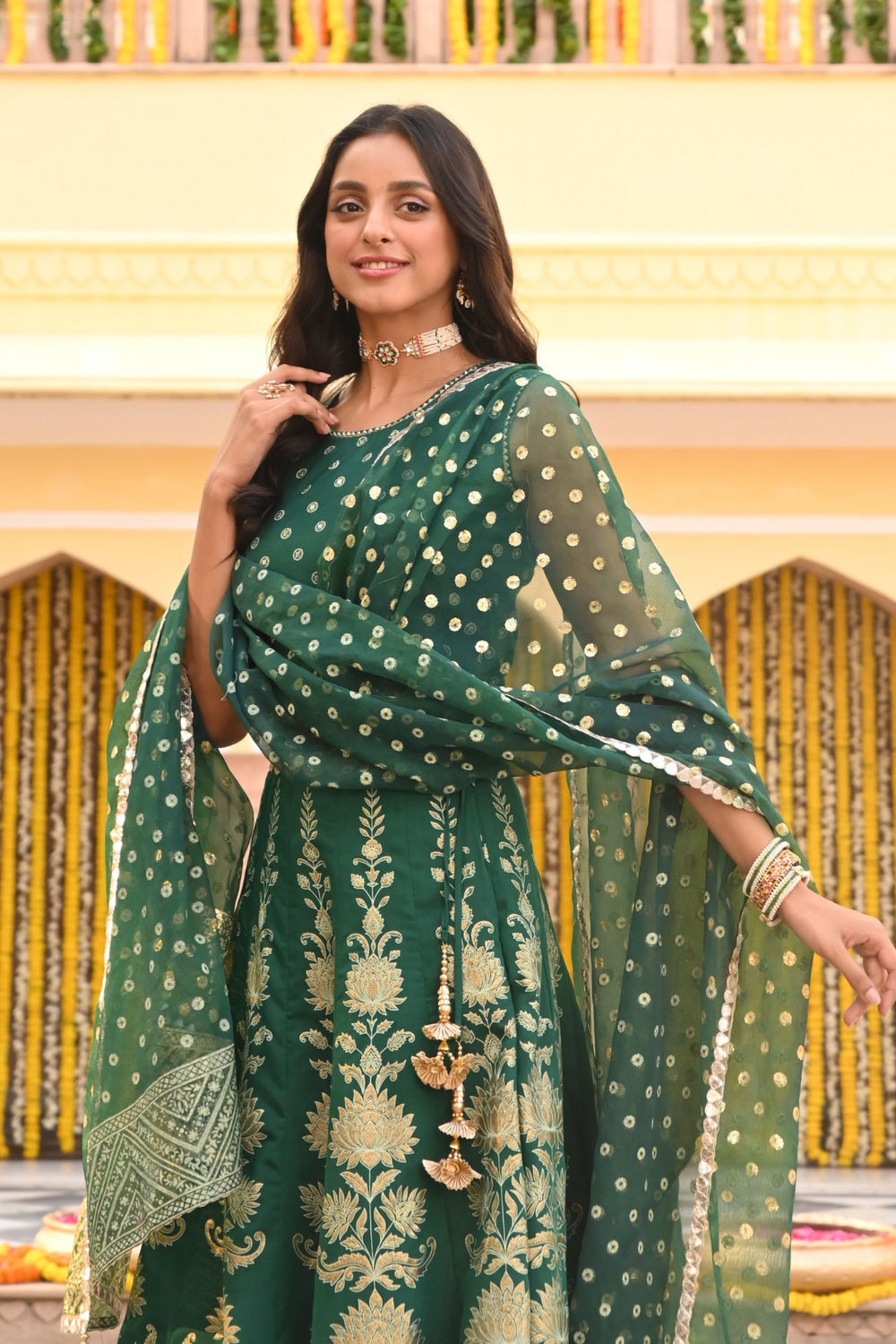 Green Printed Embellished Festive Lehenga Choli With Dupatta