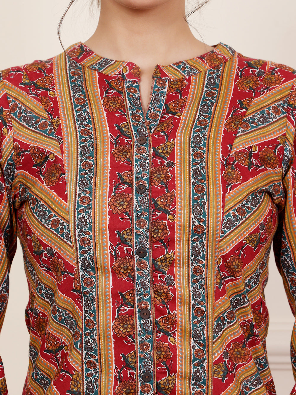 Elevate your style with our Red Cotton Mandarin Collar Straight Kurta, designed for modern women who appreciate comfort and sophistication.