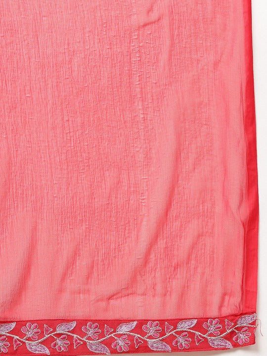 Red Embroidered Designer Kurta Pant Set With Dupatta