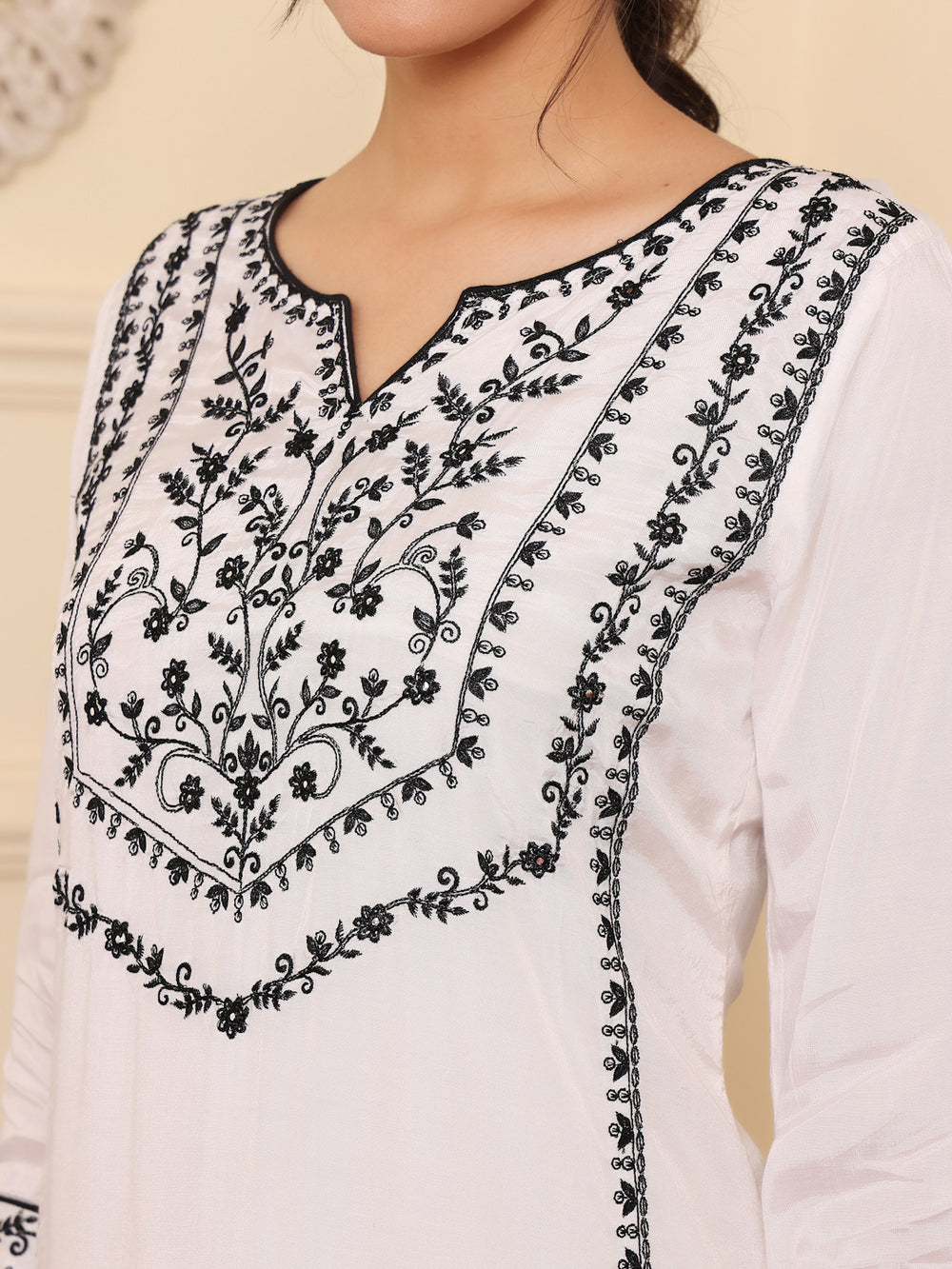 White Shantoon Embroidered Yoke Kurta Pant Set With Dupatta